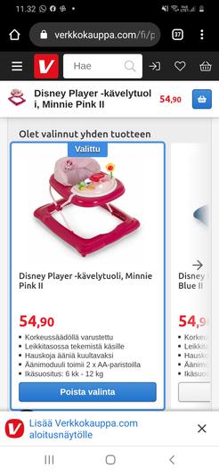 Paljon tekemistä sisältävässä Disney Player -kävelytuolissa lapsesi viihtyy pidempääkin. Kävelytuolissa on istuin ja leikkitasossa paljon tekemistä käsille. Hauskat äänet lisäävät mielenkiintoa ja viihtymistä. Korkeussäädöllä varustettu.
