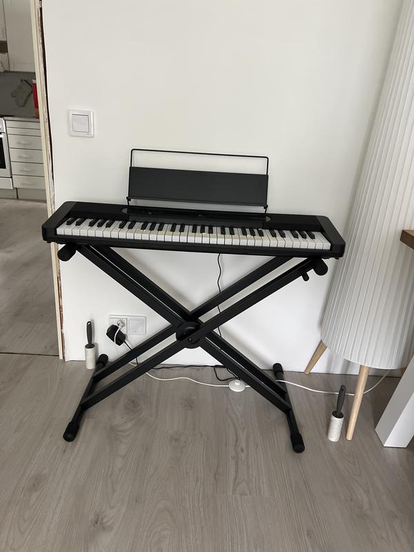 Hintaansa nähden erittäin tukeva teline viisiportaisella korkeudensäädöllä kosketinsoittimelle. Korkeuden säätö on helppo jopa huonoille näppivoimille. Tilasin samaan aikaan kosketinsoittimen kanssa. On aika välttämätön lisävaruste, jos oikeasti meinaa soittaa.