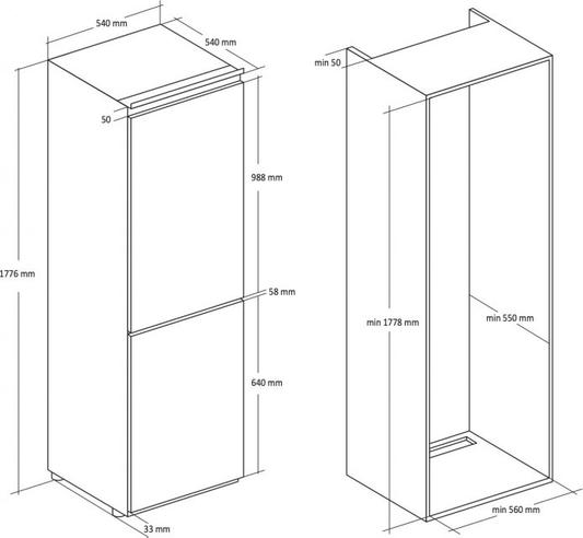 Jos jääkaappille tehty kaapinrunko on 600mm leveä, voiko kalusteovi tällöin olla normaalin kaapinoven tapaan 595mm leveä vai täytyykö sen olla aina tuon 540mm leveä?
