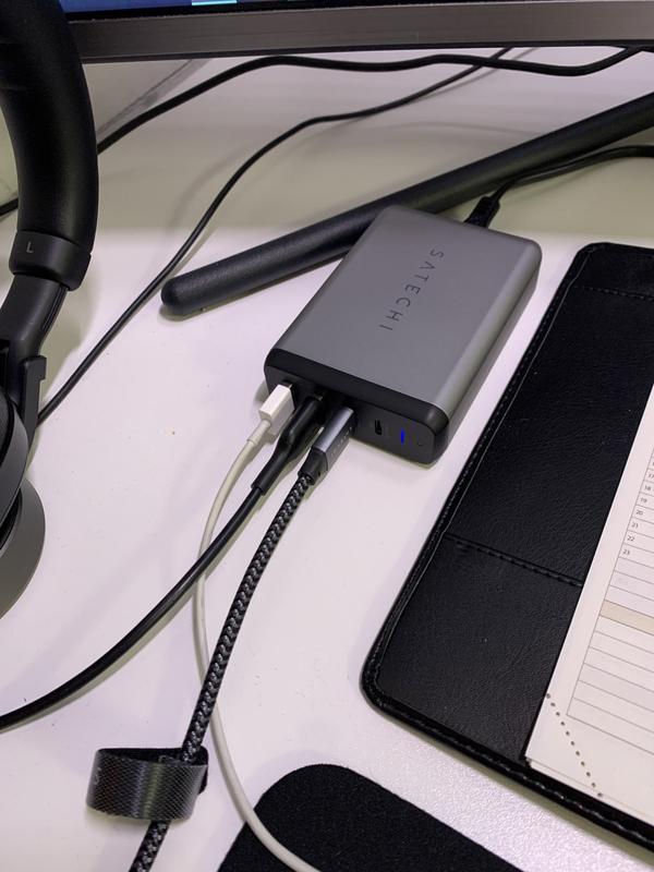 Tyylikäs työpöydällä ja kätevä matkalla. Täydet pisteet siitä että pärjään tällä yhdella laturilla kaikkien laitteideni suhteen. Suosittelen. Satecin oma 100W kaapeli kallis mutta sitälin laadukkaampi. Lataus on tekohasta ja tiedonsiirtonopeus priimaa.
