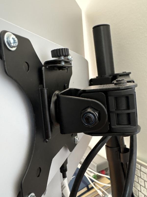 I use this monitor mount for my home office and overall, I'm happy with the product. It looks solid and holds my monitor well enough for daily work. However, one small issue is that the screw behind the monitor can't be fully tightened, so the monitor isn't completely steady. Since I don’t move it around, it’s manageable—but it can get a bit annoying at times. Still, for a fixed setup, it works just fine.