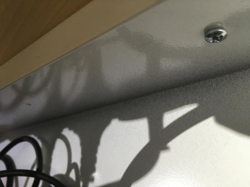 Muuten hyvin tehty tuote paitsi että reiät ruuveille on jostain syystä tehty niin ettei pääse suoraan ruuvimeisselillä. Eli tarvitsee joko todella lyhyen ruuvimeisselin, pienet kädet, ja kärsivällisyyttä… tai teet niin kuin minä ja poraat omat reiät metalliin itsestäänselvästi parempaan paikkaan niin että pääsee helposti ruuvaamaan kiinni.