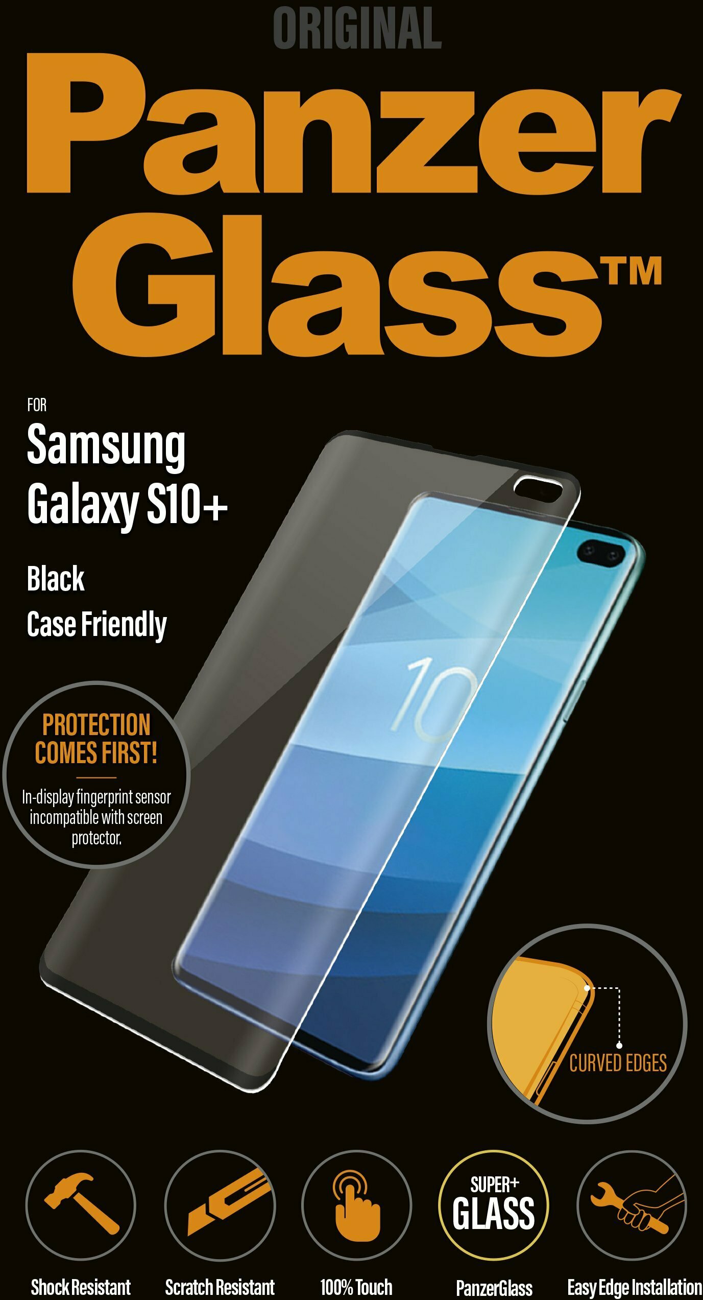 PanzerGlass Case Friendly -lasikalvo, Galaxy S10+, musta