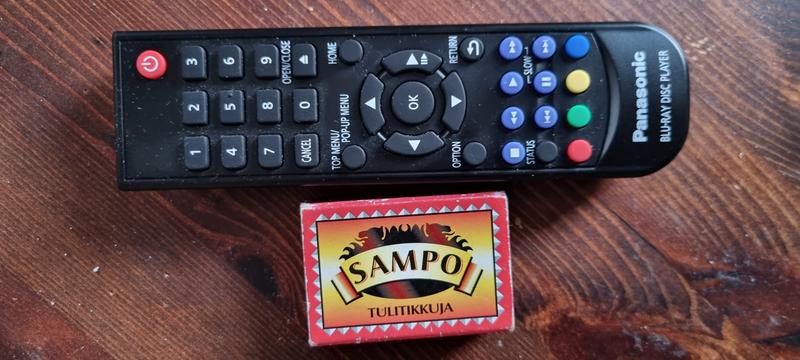 Ja sitten.. Kaukosäädin on kar-mee... Veikkaisin, että markkinoiden halvin versio heitetty laitteelle kaveriksi. Kelkan saa Eject -napilla ulos, mutta toisinaan melkoinen painiminen saada takaisin sisään. Myöskään Play -napilla tuo ei hoidu, kuten yleensä muilla laitteilla on onnistunut. Itse laitteen päällä on tasan kaksi nappia, Eject ja Power. Ensin mainitusta saat kelkan auki, mutta samasta napista ei menekään kiinni. Ei edes voimasanojen kera. Tuolloin voi kuitenkin käydä tuuri ja saat kaukosäätimen napista kelkan kiinni. Laitteen virtanappi vielä jotenkin toimii, laite lähtee napista käyntiin, mutta jos tulet heti katumapäälle ja haluat kiinni, niin käyttöliittymän käynnistyminen täytyy ensin odotella loppuun.