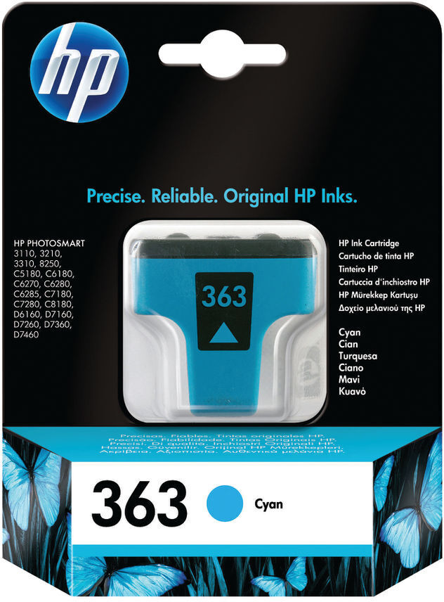 HP 363 -mustekasetti, syaani, noin 400 sivua