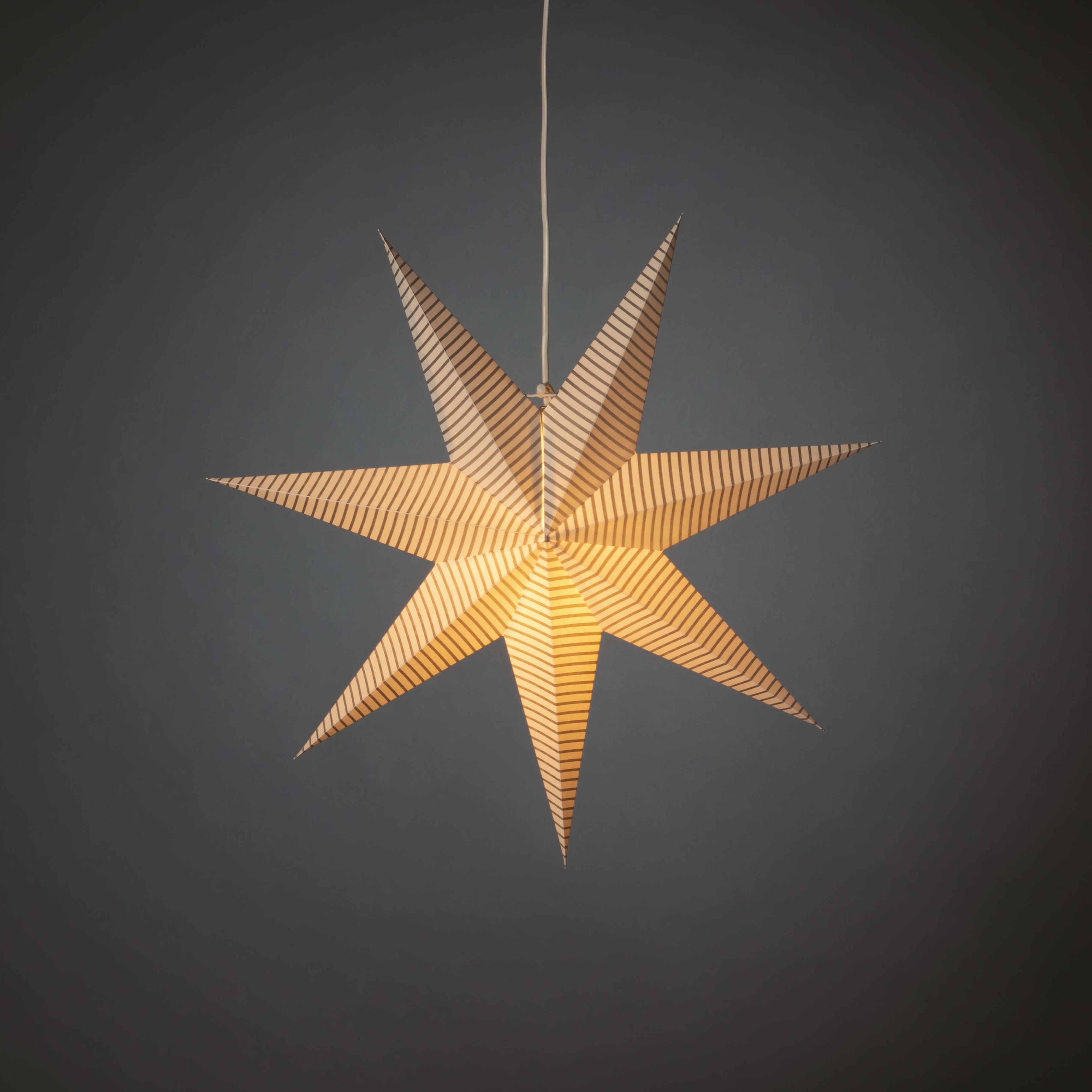 Konstsmide paperitähti 60cm, valkoinen-hopea, vaakaraita, sisältää johdon