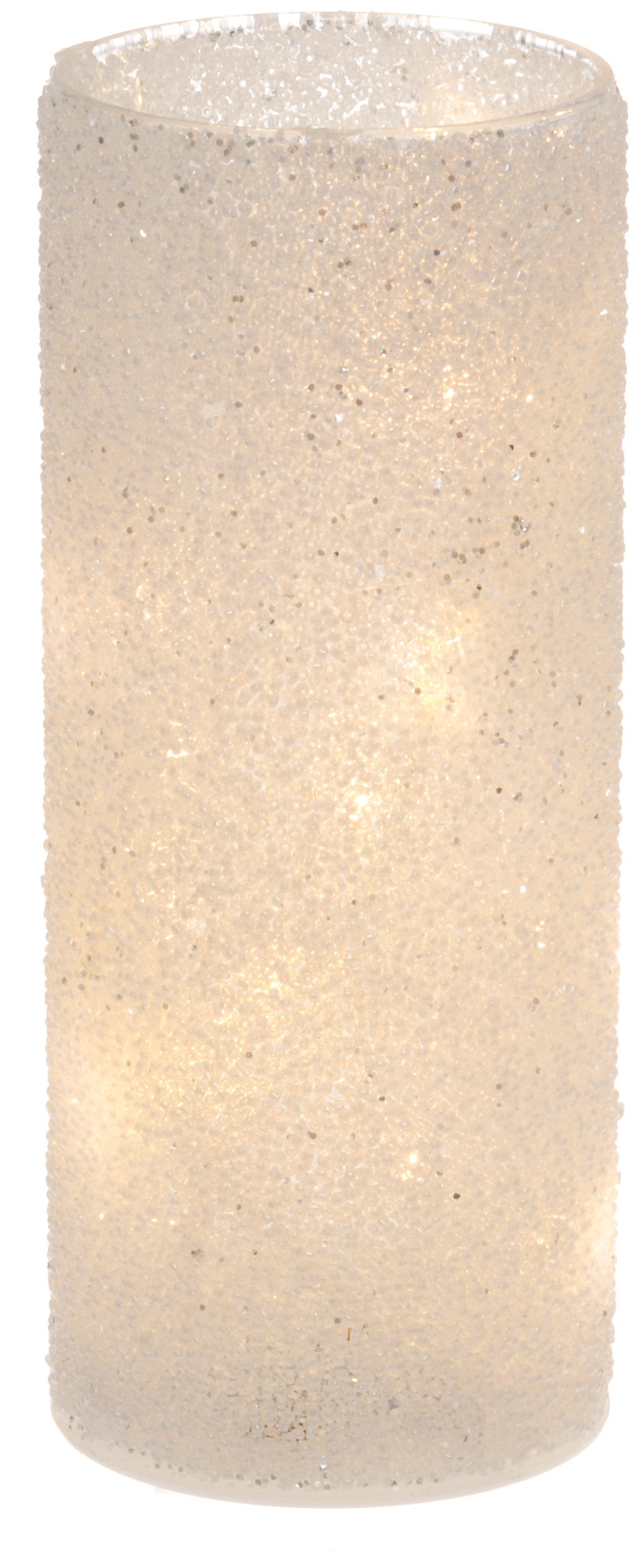 Winterseason huurteinen lasilieriö led-valolla, 20 cm, paristokäyttöinen