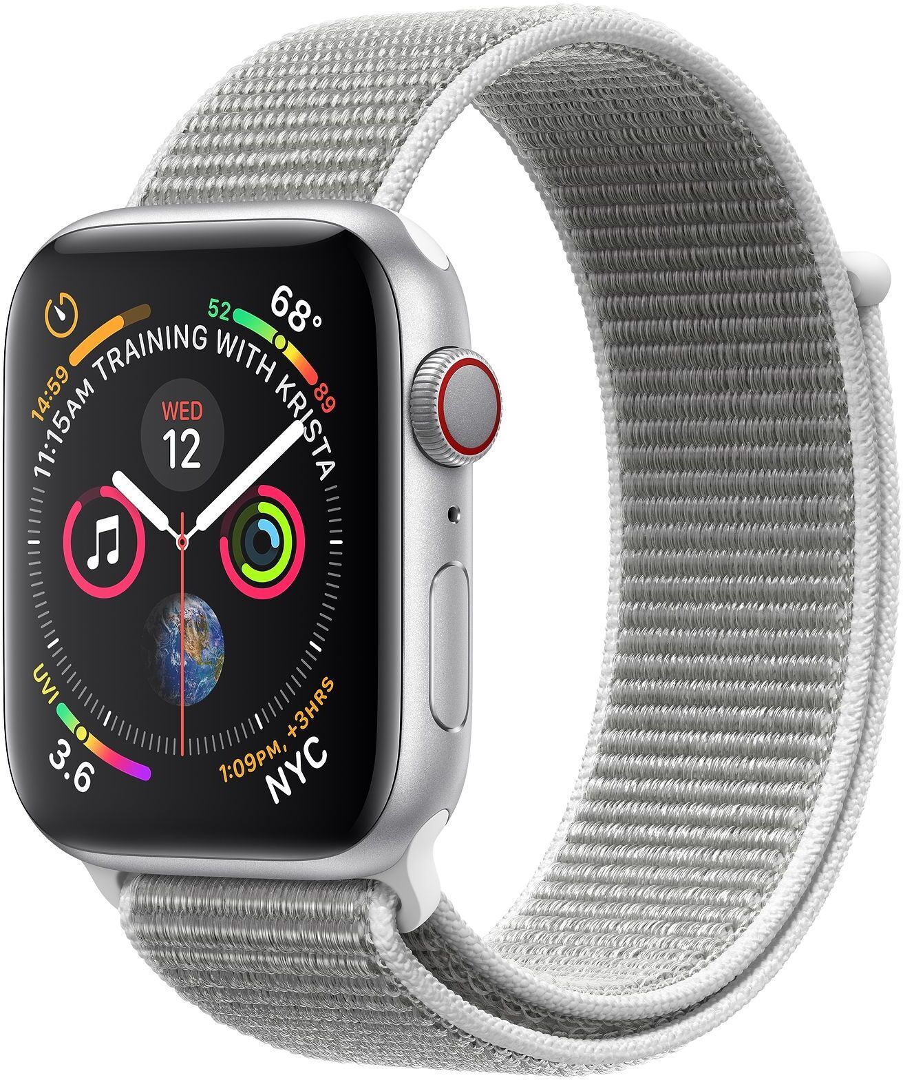 Apple Watch Series 4 (GPS + Cellular) hopeanvärinen alumiinikuori 40 mm, simpukanvärinen Sport Loop -ranneke, MTVC2