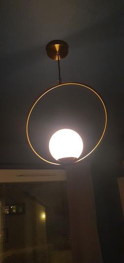 Pyöreälinjainen Lockhart & Fleming Sitting Room Single Pendant -riippuvalaisimessa on antiikkimessingin värisen renkaan sisällä valkoinen lasipallo, joka antaa pehmeän valon huonetilaan. Valaisin henkii klassista aikakautta modernilla otteella.