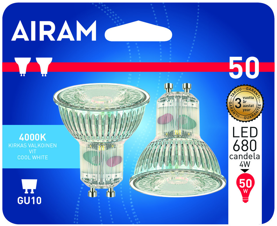 Airam LED 2pack -ledlamppu GU10-kantaan, 4000 K, 345 lm