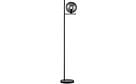 Kevyt selkeälinjainen antrasiitinvärinen lattiavalaisin, jossa valo kuultaa kauniisti savulasisen lasikuvun läpi.