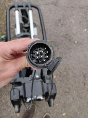 Kuvan pistoke on 13-pin standardin pistoke, vaikka varsinaisia pinnejä on vain kahdeksan. Pyöräteline ei käytä kaikkia liitännän ominaisuuksia, joten myöskään pinnejä ei ole pistokkeeseen laitettu ylimääräisiä.