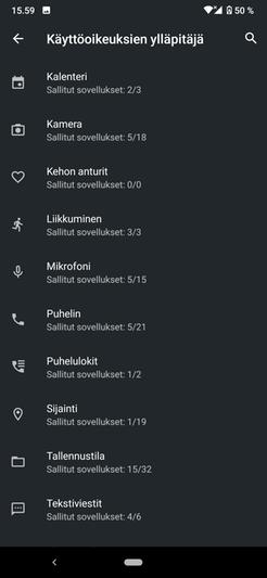 Yksityisyysfriikeille iloinen yllätys: Asetuksista saa myös otettua pois mikrofonit ja kamerat (sekä muut) käytöstä per appi, myös googlen ohjelmista, jolloin puhelin ei enään kuuntele käyttäjää ja jokainen appi kysyy luvat kaikkiin tarvitsemiinsa ominaisuuksiin, joten likaisia yllätyksiä ei pääse tulemaan. Tämä menee jopa niinkin pitkälle että kamerasovellusta voi kieltää käyttämästä kameraa, mikä on täysin hyödytöntä, mutta sekin on vaihtoehtona..