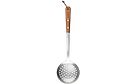 Ruostumattomasta teräksestä valmistettu Heirol-reikäkauha on monipuolinen apuväline vaahdon tai rasvan kuorimiseen nesteen pinnalta ja munkkien paistamiseen.