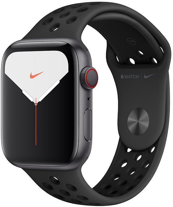 Apple Watch Nike Series 5 (GPS + Cellular) tähtiharmaa alumiinikuori 44 mm, Antrasiitti/musta Nike Sport -ranneke, MX3F2