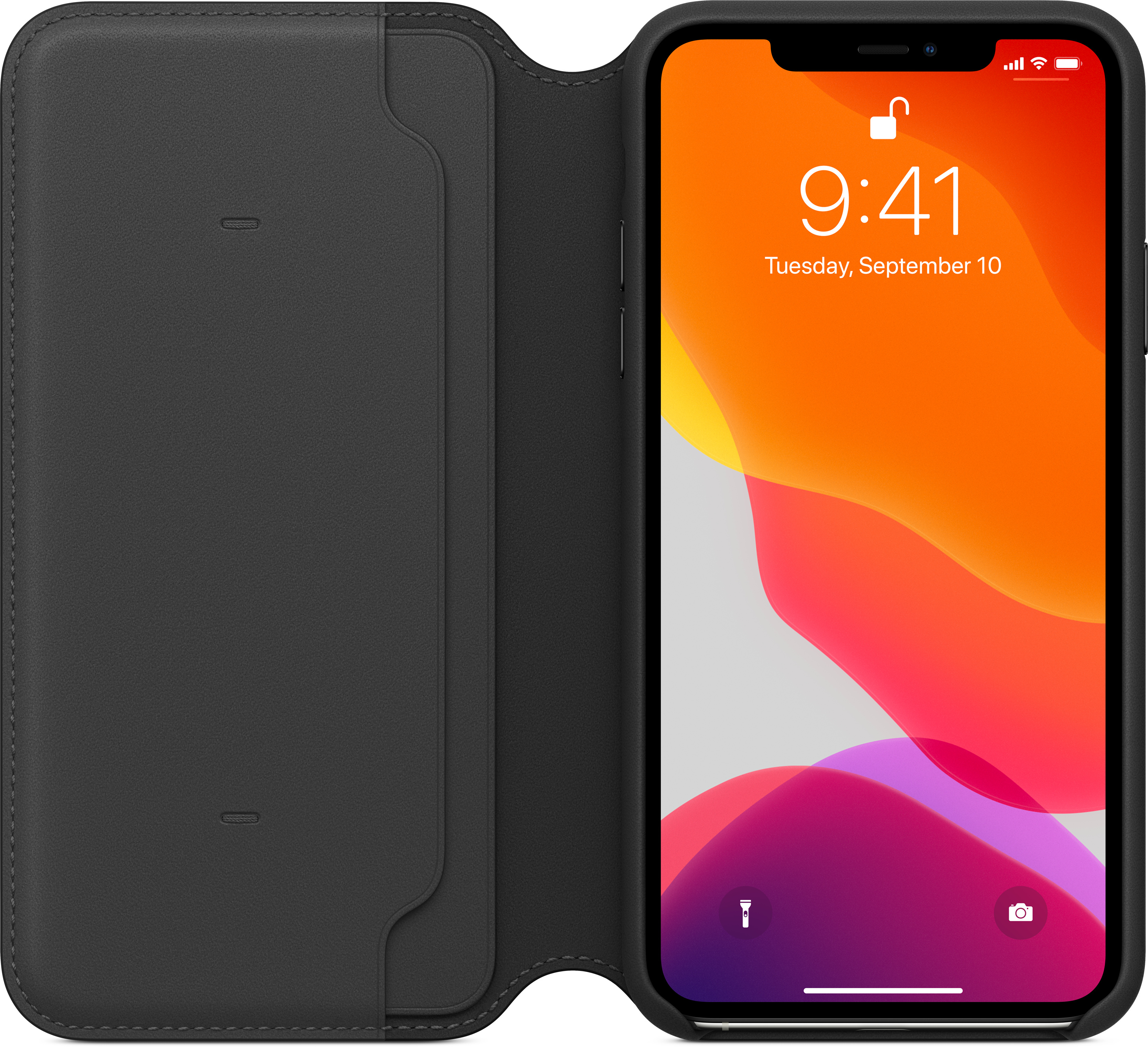 Apple iPhone 11 Pro Max -nahkakotelo, musta (MX082)