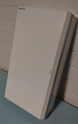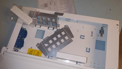 Asennuskset tehdään kesäkuussa. Kuvassa huoneistojakamokotelo, ulkomitat 500x280x105. Koteloon tulee kuitupääte ja mediamuunnin. Niiden koko reipas tupakka-aski.