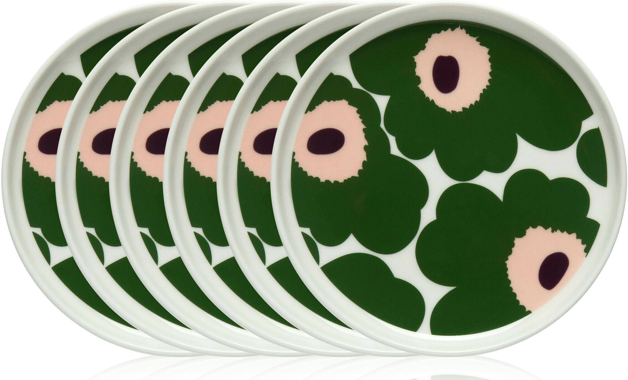 Marimekko Unikko -lautanen, 13 cm, valkoinen/vihreä/persikka, 6 kpl