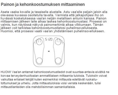 "Mittaa lihas-, luu- ja rasvamassan" Miten näihin tietoihin pääsee käsiksi Mi Fit -sovelluksessa? Onnistunut ainoastaan näkemään, jos sovellus on auki kun astuu vaa'alle. Peruutus etusivulle ja tietoihin ei enää pääse.