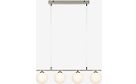 Markslöjd Quattro on moderni kattolamppu sirolla, teräksenvärisellä metallirungolla ja neljällä valkoisella lasikuvulla. Katseet vangitseva valaisin sopii kauniisti esimerkiksi olohuoneeseen, eteiseen tai ruokapöydän ylle.