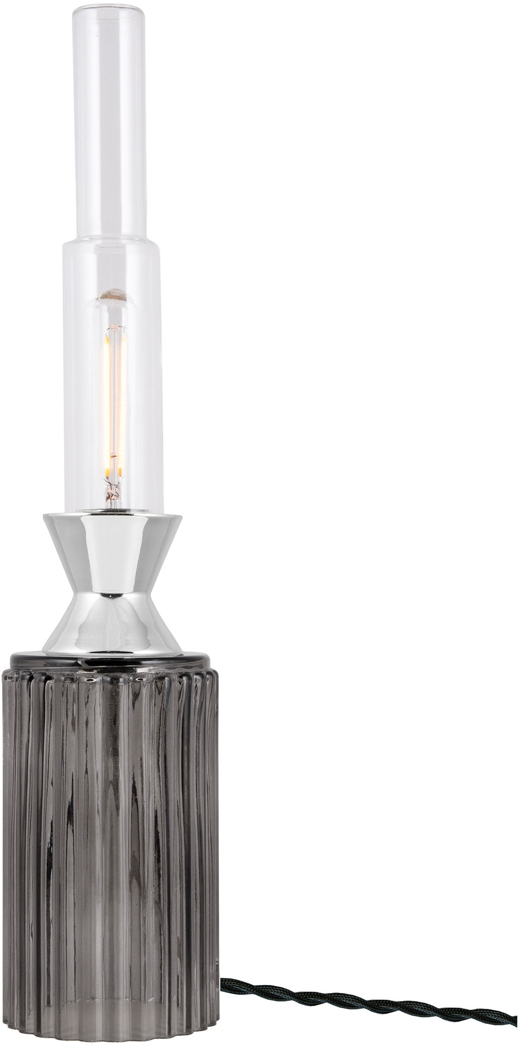 Globen Lighting Ester -pöytävalaisin, savulasi/kromi, E14