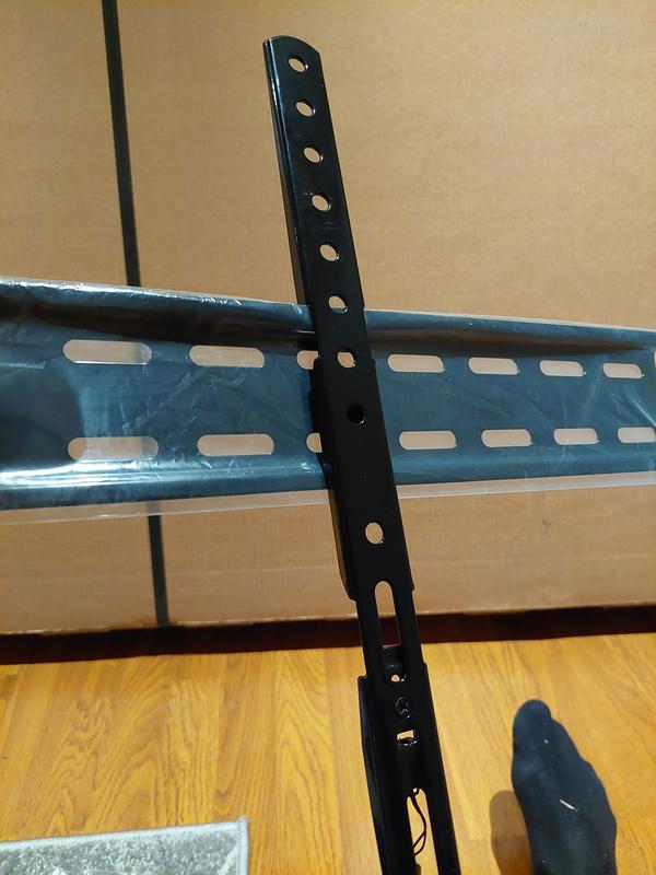 Paketissa selvästi väärän telineen kiinnityskiskot. Telkkarin selkäpuolelle tulevat kiskot poikkeavat selvästi kuvista ja ohjeista. Seinään tulevan kiskon korkeus on 80mm. Kiinnityskiskojen ylemmän ja alemman koukun välinen etäisyys on kuitenkin 150mm eikä sitä pääse muuttamaan. Eli telineen osat eivät kiinnity toisiinsa millään tavalla