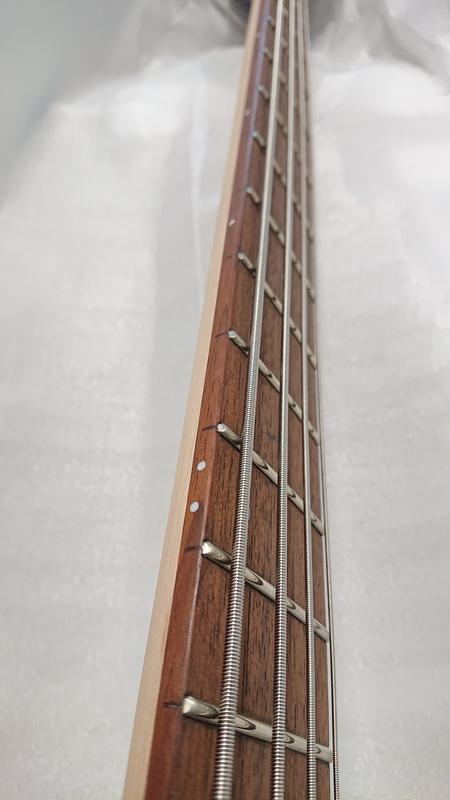Soitin yllätti positiivisesti. Hankin tämän vara- ja työmatkojen treenibassoksi. Edullisesta hinnasta huolimatta viimeistely on hyvä, nauhat on siististi viimeistelty, ei teräviä päitä tai reunoja. Kaula on todella ohut, nopea ja helpposoittoinen, ja helmiäisväri näyttää siistiltä. Myös runko on mukavan ohut ja kevyt, mutta soitin on silti jämäkän tuntuinen.