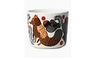 Marimekon Oiva-kahvikuppi Aino-Maija Metsolan suunnittelemalla leikkisällä Ketunmarja -kuosilla