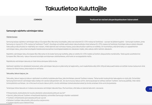 https://www.samsung.com/fi/support/warranty/ (Ulkoinen palvelu) (Avautuu uuteen välilehteen)