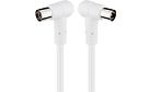 Toimiva kaapeli. Molemmissa päissä 90 asteen kulmat, helpottavat esim. sohvan taakse piuhan asentamista kun eivät katkea juuresta. Muualta hankala löytää yhtä pitkää ja halpaa kaapelia kulmilla.
