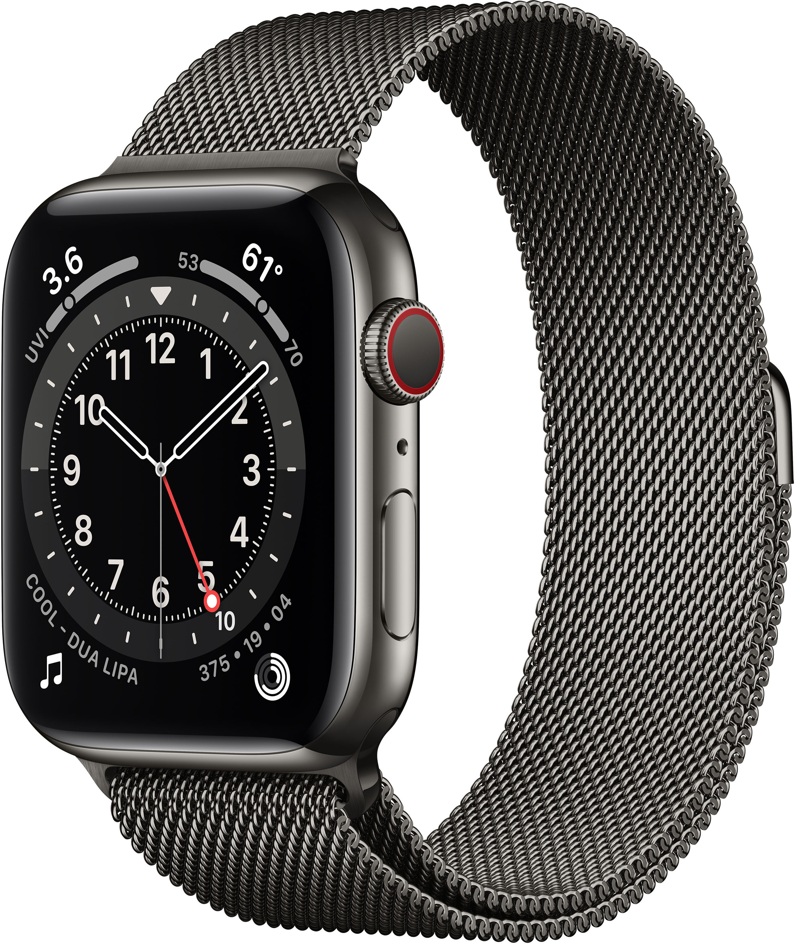 Apple Watch Series 6 (GPS + Cellular) 44 mm grafiitinvärinen ruostumaton teräskuori ja grafiitinvärinen milanolaisranneke, M09J3