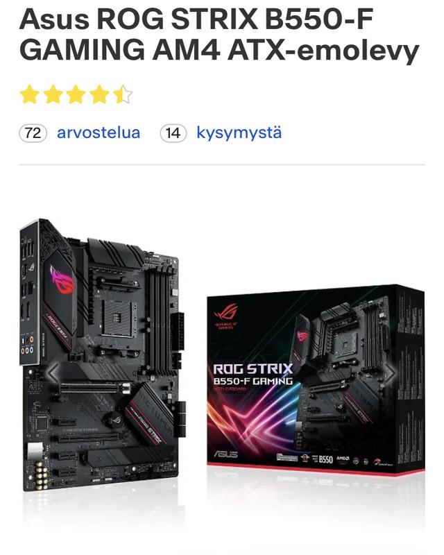 Ei huono ostos, tosin hintalaatusuhde keskinkertainen. Ostaessa tärkeää varmistaa, että emolevyn BIOS:n pystyy Flashäämään tikulta "ilman prosessoria". Tähän kelpaa mm. Asuksen kalliimmat lankut (ei x570 TUF esim kuitenkaan). Itse päädyin MSI:n x570 Tomahawkiin.