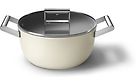 Kermanvärisen Smeg kattilan tukeva runko on valmistettu alumiinista, pohja ja kahvat ovat ruostumatonta terästä. Alumiinirunko takaa loistavan lämmönjohtavuuden ja lämmön tasaisen jakautumisen koko pohjan pinnalle. Tämä estää sen, että yksittäisiä kuumia kohtia jotka polttavat ruoan, ei pääse syntymään.