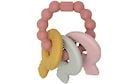 Hempeän sävyiset ja miellyttävää materiaalia olevat puruleluavaimet, jossa kaikissa avaimissa erilainen pintakuviointi.