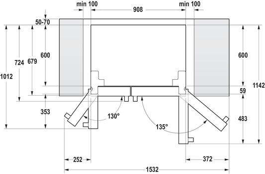 Kuinka paljon tilaa tämä kaappi tarvitsee sivuilleen, että ovet avautuvat kunnolla?