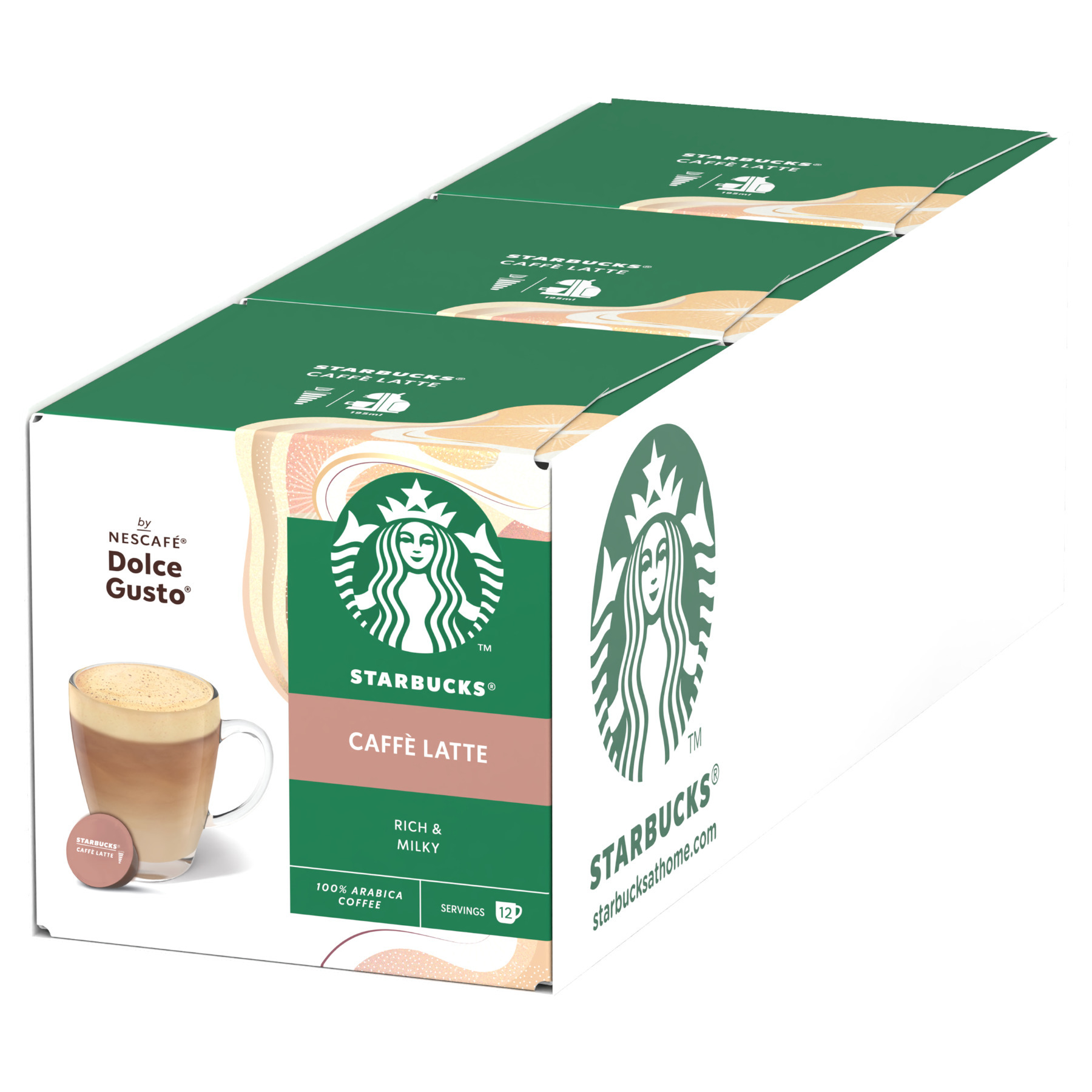 Starbucks Dolce Gusto Caffé Latte -kahvikapseli, 12 kpl, 3-PACK
