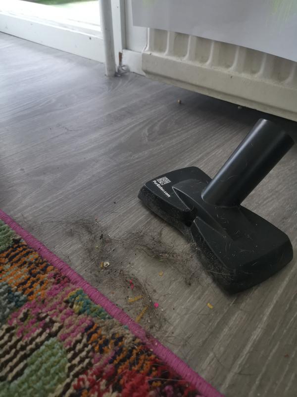 Karvat lähtee todella hyvin huonekaluista ja matoista. Ainoa miinus että ei pysy kunnolla imurin pitkässä varressa eli pitää vähän kumarrella mattoja imuroidessa. Mutta karvat lähtee kunnolla pois, muilla menetelmillä ei ole näin hyvin saanut kangaspinnoista kissan karvoja pois.