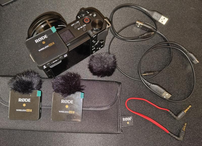 Tämä korvasi aiemmin käytössä olleen yhden lähettimen Rode Wireless Go -setin. Yksi oleellisin muutos kahden lähettimen lisäksi on täysi kommunikointi tietokoneen USB-portin kautta. Rode Connect -softa lisäksi ilmoitti välittömästi päivityksen olevan saatavilla, kun liitin palikat koneeseen yksi kerrallaan. Päivitys kannattaa tehdä – siitä tulee edistyneemmät säädöt äänitasoille. Mikki on juuri sopivan herkkä kaulukseen laitettuna jopa ilman lavallier-mikkiä. Oman Sony ZV-E10-minijärkkärin kanssa tulee paras ääni, kun vastaanottimen äänitaso on kovalla ja kamerassa taas tasolla 5/30.