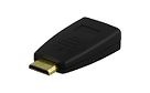 DELTACO HDMI-adapteri, mini HDMI uros > HDMI naaras, 19-pin, kullattu