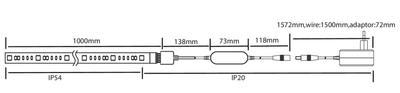 LED-nauhan IP-luokitus on IP54, mikä tarkoittaa, että se kestää pölyä ja roiskevettä, joten sitä voi käyttää tiloissa, joissa on jonkin verran kosteutta. Muuntaja ja ohjain ovat IP20-luokiteltuja, eli ne eivät kestä kosteutta ja on sijoitettava kuivaan sisätilaan. On tärkeää huomioida, että vaikka itse nauha kestää roiskeita, liitoskohdat ja ohjausyksikkö ovat herkkiä vedelle, joten asennuksessa on varmistettava, ettei niihin pääse kosteutta ja että kokonaisuus on käytössä valmistajan ohjeiden mukaisesti.