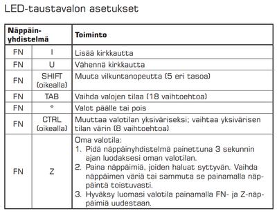 Onko näppäimistön ledeille erikseen sovellus? Mikä