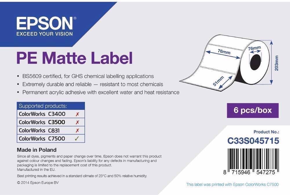 Epson PE Matte Label -etikettitarra, 76 mm x 51 mm