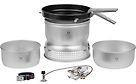 Koko perheen ultrakevyt retkikeitinsetti kaasupolttimella.