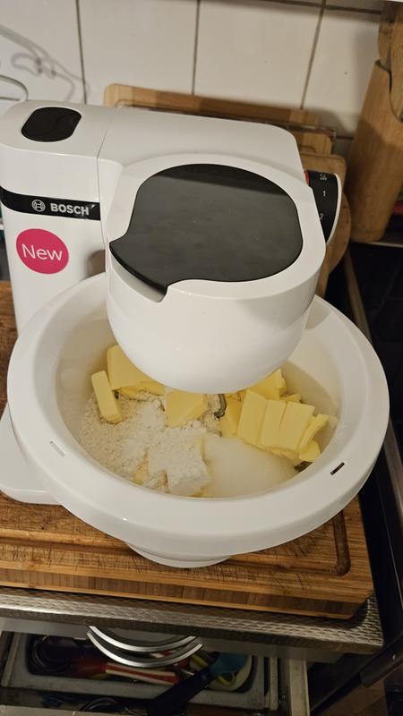Patonki-, maustekakku- ja piirakkataikinan jälkeen tuntuu pääosin sopivalta valinnalta pieneen talouteen. Taikinakoukku pyörittää ja kerää hyvin, samoin litteämpi vispilä. Pallovispilästä ei vielä kokemusta. Kevyehkö laite, ei vie paljon tilaa ja helppo nostaa pöydälle. Miinusta: teräskulhon kovasta, kulmikkaasta reunasta piteleminen taikinaa kaadettaessa hankalaa. Johdon kiertyminen piiloon kankeata. Ääni muuten tasainen, mutta kolmosvaihteella (neljästä) syntyy yllättäen paha "yläulina". Ja minä kun toivoin voivani työskennellä ilman kuulosuojaimia! Lisälaitteita saatavilla moneen tarpeeseen. Saas nähdä. Odotin tältä kyllä enemmän.