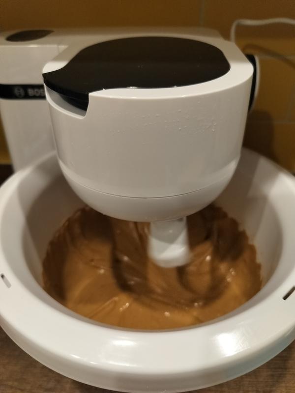 Kevyt ja näppärä, kaikki kevyet taikinat tulee helposti ja nopeasti. Helpottaa leipomista, kun ei tarvitse vatkain kädessä seisoskella vaan voi valmistella muuta. Kulho liikkuu vähän ja voisokerivaahtoa joutui välillä kaapimaan reunoilta. Lisäysaukko kannessa aika nafti.