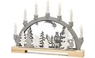 Konstsmiden veikeässä puisessa pöytäkynttelikössä on seitsemän valopistettä kynttilöissä ja kolme siluettimaisen keskiosan kuvioiden taustalla. Kauniisti tehdyt puuleikkaukset korostavat kynttelikön herkkää olemusta.