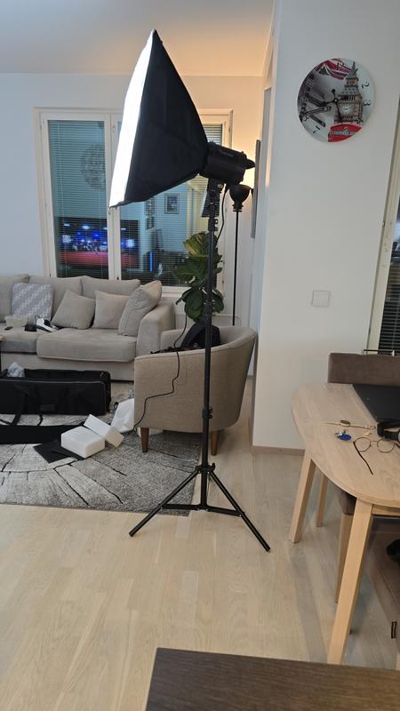 Hyvä setti, jossa saa kerralla kaksi valoa. Valon tehoa pystyy säätämään, mutta värilämpötilaa ei. Softboxit ovat kasattavat, niihin ei tule ohjetta mukana. Maalaisjärjellä saa kyllä kasaan, mutta tikut ovat hieman liian pitkät ja kasaus oli aika työlästä. Jalustat tuntuvat tukevilta, eikä tarvitse pelätä että ne kippaavat valojen painosta. Ostin tuotteen Black friday-tarjouksesta, joten voi sanoa että hyvä hinta-laatusuhde ja toimii hommassaan.