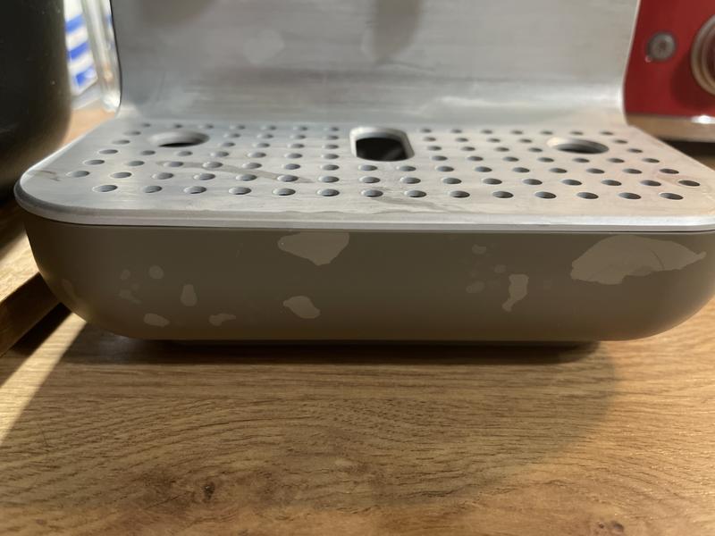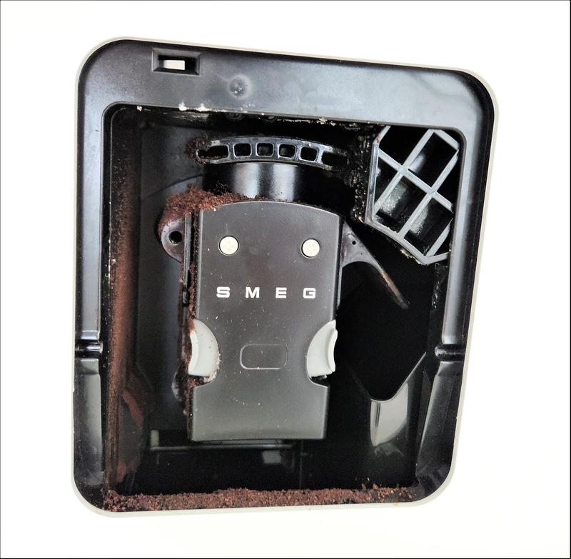 - Jauhettuja kahvinpuruja menee koko koneiston kaikki paikat täyteen ja ne homehtuvat sinne sisälle. Hyvin vaikea puhdistaa (liitteenä olevassa kuvassa näkyy maitoastian ympärille kerääntyneet kahvinpurut).