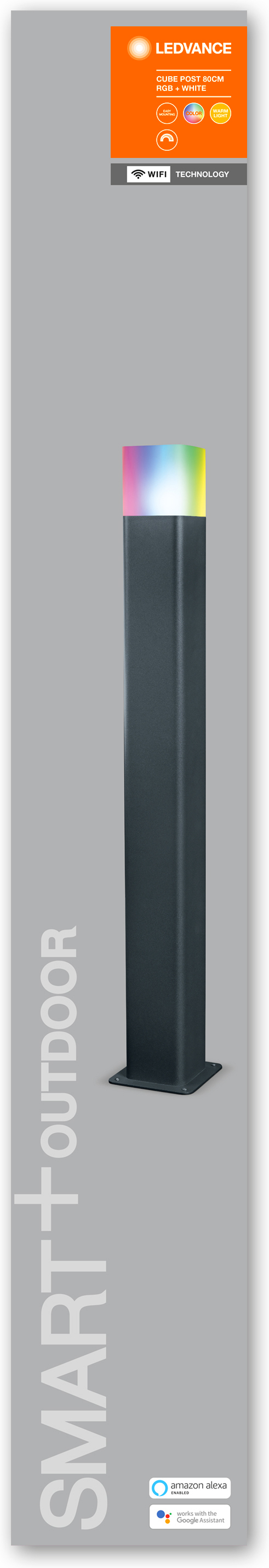 Ledvance SMART+ WiFi Cube -pylväsvalaisin, 80 cm, 450lm, RGBW, tummanharmaa