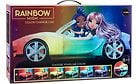 Rainbow High Väriä vaihtava auto vaihtaa väriä sateenkaaren lailla! Miksi tyytyä yhteen väriin, kun voit valita kaikki? Upeilla yksityiskohdilla varustetussa autossa on tilaa kahdelle nukelle.